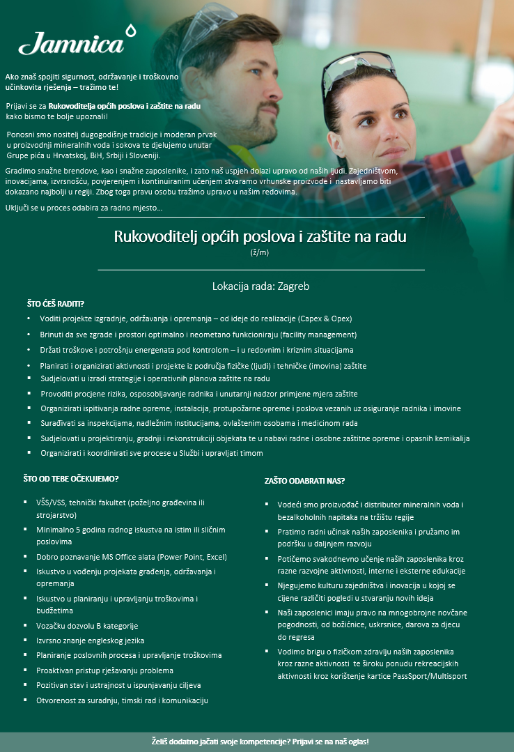 Rukovoditelj općih poslova i zaštite na radu (m/ž)